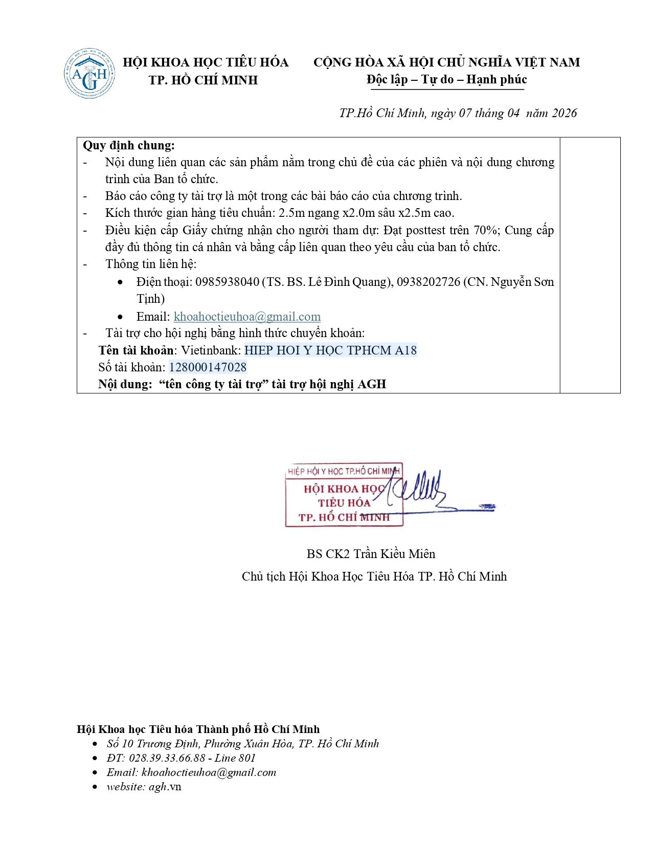 Rất mong Quý đối tác quan tâm, đồng hành cùng Hội Khoa Học Tiêu Hóa Thành phố Hồ Chí Minh để mang lại những giá trị thiết thực cho cộng đồng y khoa Việt Nam.